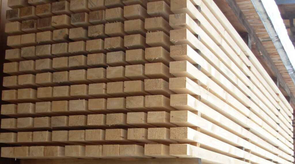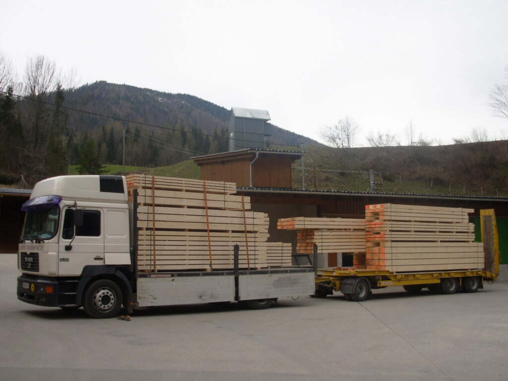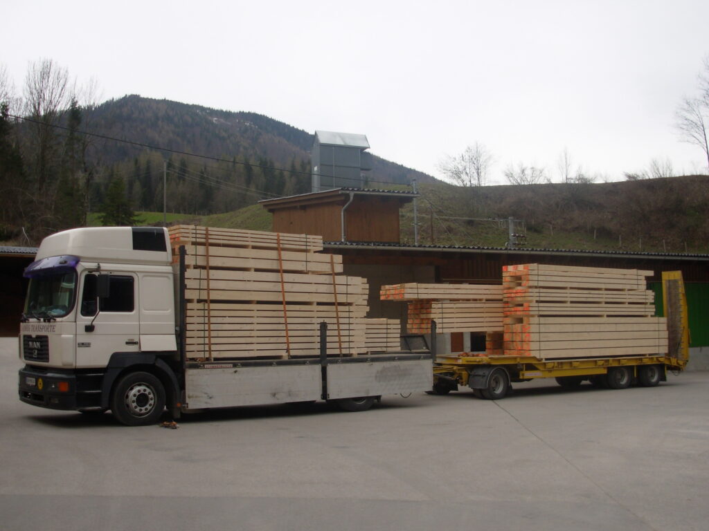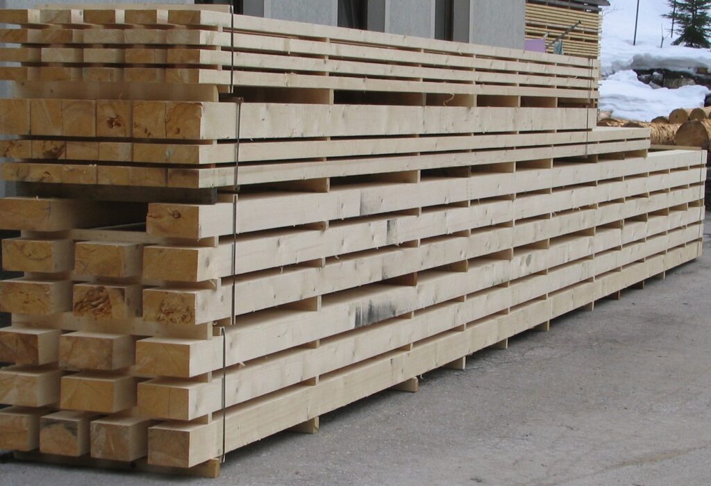Nach Wunsch wird Ihr Bauholz von uns gelattet und paketiert.